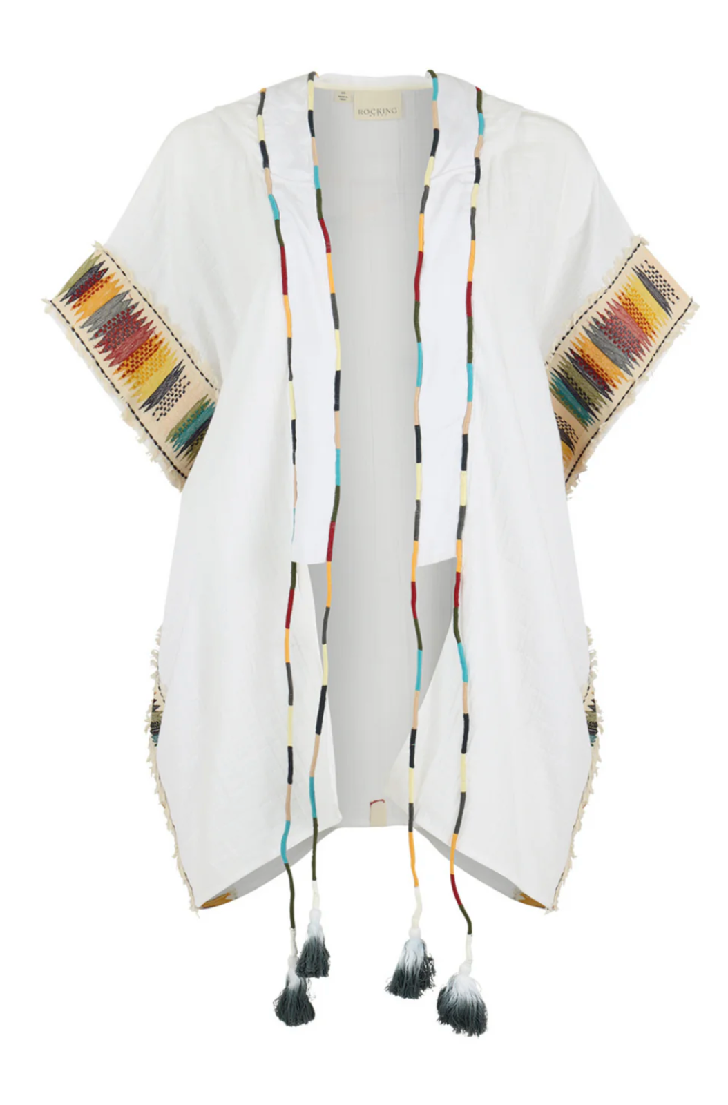 Our El Matador Cover Up is crafted from the finest Indian cotton and trimmed with 100% silk. Each piece is embellished with delicate, multi-color embroidery, wrapped trim and dip dye tassels. From beach to street, this piece is the perfect layer as the sun begins to set. Pair it with cut off denim and a simple white tank for a brunch date or layer over a slip dress and heels for a glam bohemian evening look.
