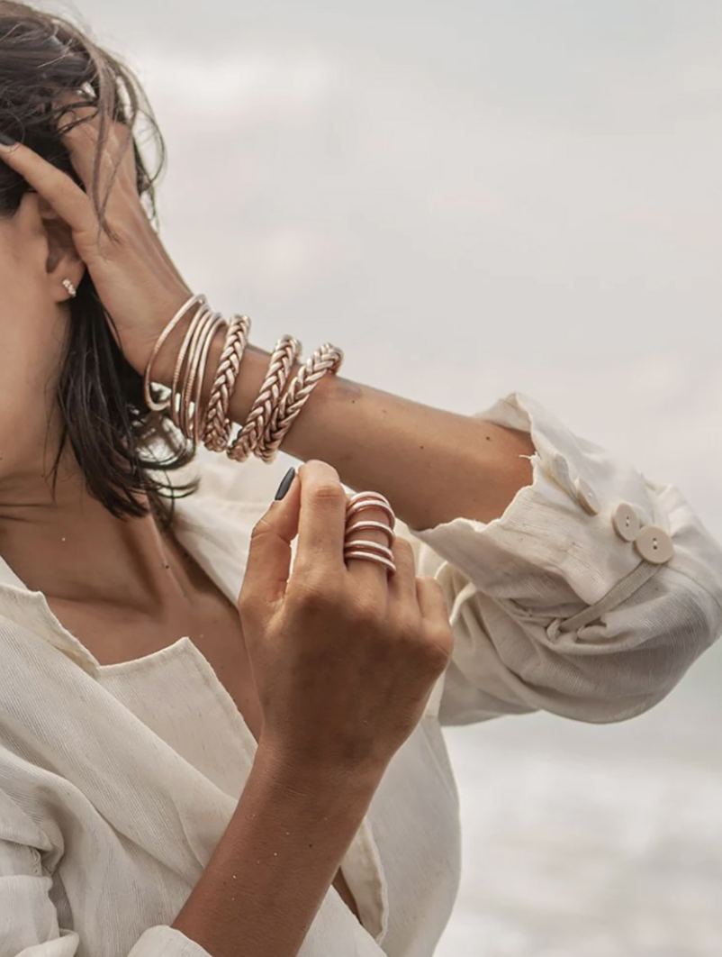 These slim bangles are made using rose gold leaves, they are sealed with a prayer of protection and sacred oils.