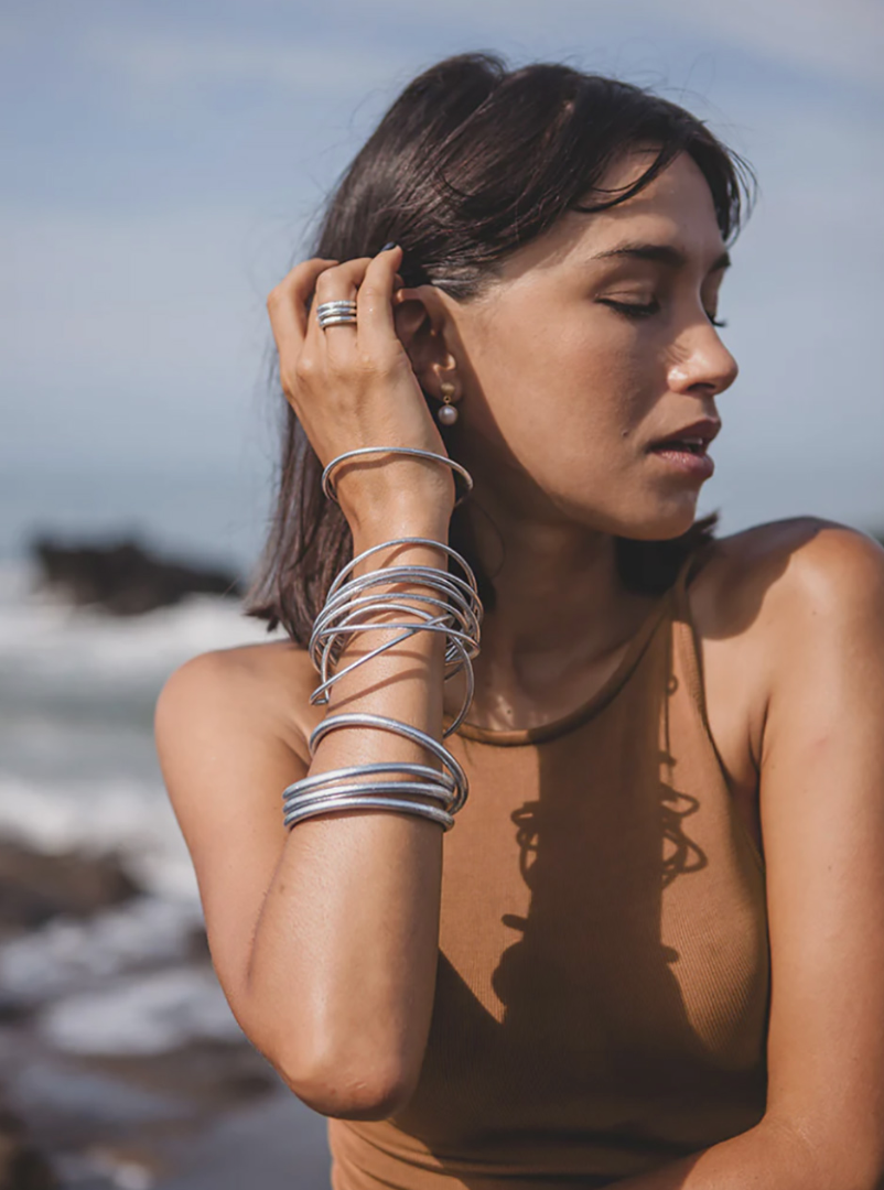 These slim bangles are made using silver leaves, they are sealed with a prayer of protection and sacred oils.